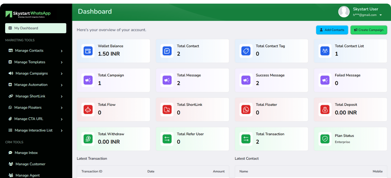 SkystartWhatsApp offers WhatsApp CRM tools, message automation, contact segmentation, multi-agent inbox, campaign analytics, and lead tracking.